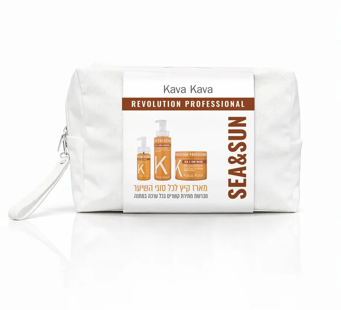 התיק מכיל מסכה sea&san 550 מ"ל, שמפו ללא מלחים sea&san 500 מ"ל, סרום sea&san 125 מ"ל ומברשת מתירה קשרים